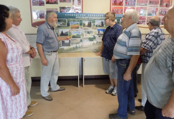 Руководитель кружка «Краевед» Виктор Михайлович Крапивкин рассказал присутствующим историю возникновения села, интересные факты и уникальные сведения о достопримечательностях, культурных и природных объектах, именитых земляках, прославивших родное село.